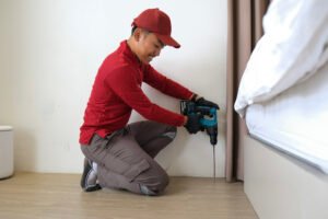 Teknisi melakukan pengeboran kecil di lantai atau sekitar pondasi, lalu menyuntikkan cairan termitisida untuk membentuk barrier pelindung.